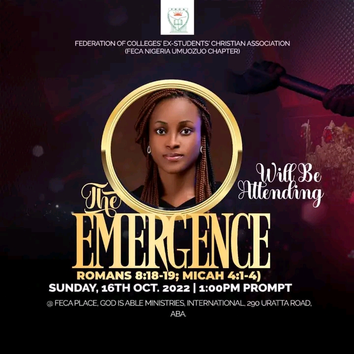In FECA Nigeria Enugu chapter, October 15 will usher in new leadership house; it's going to be a thanksgiving/handover service where FECAites know the new arrowheads of the chapter.