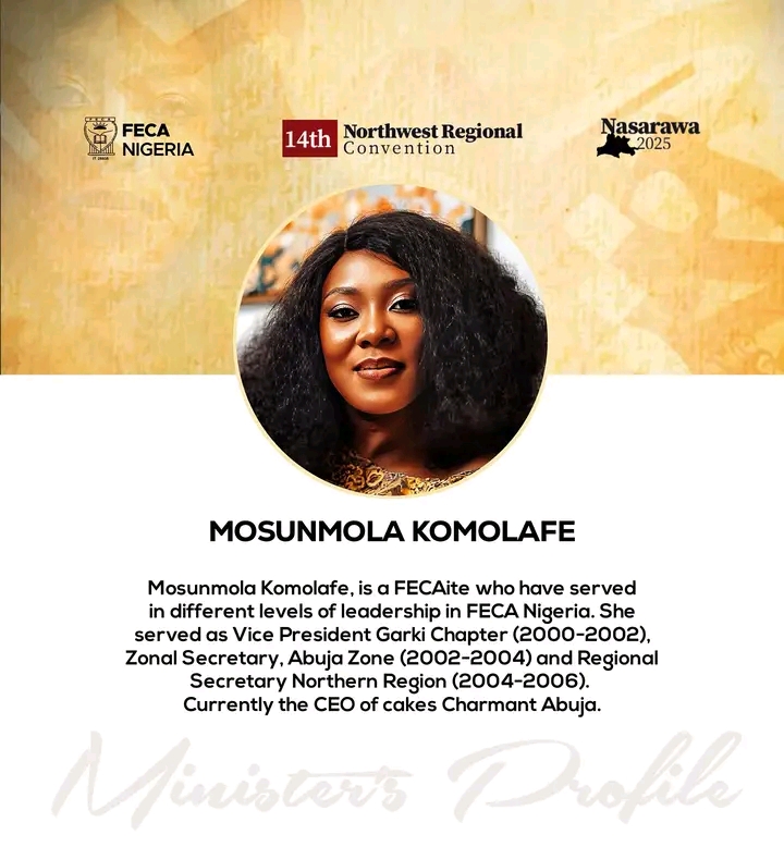 For the 14th North West Regional Convention holding in Nasarawa State, FECA Nigeria is honored to welcome back one of its very own — Mosunmola Komolafe. A woman of legacy, Mosunmola is a seasoned leader who rose through the ranks within the ministry, serving as Vice President of the Garki Chapter (2000–2002), Zonal Secretary of the Abuja Zone (2002–2004), and Regional Secretary for the Northern Region (2004–2006). Today, she continues to wield influence in the marketplace as the CEO of Cakes Charmant in Abuja. Her return is not merely a coincidence — it is purposeful. She comes bearing witness to what it means to carry Kingdom Influence beyond the church walls. Her life and leadership speak of consistency, grace, and excellence — qualities that deeply align with FECA’s mission of building a generation of influencers. In the month of August 2025, the North West will rise under a voice that shaped its past and is now speaking into its future.
