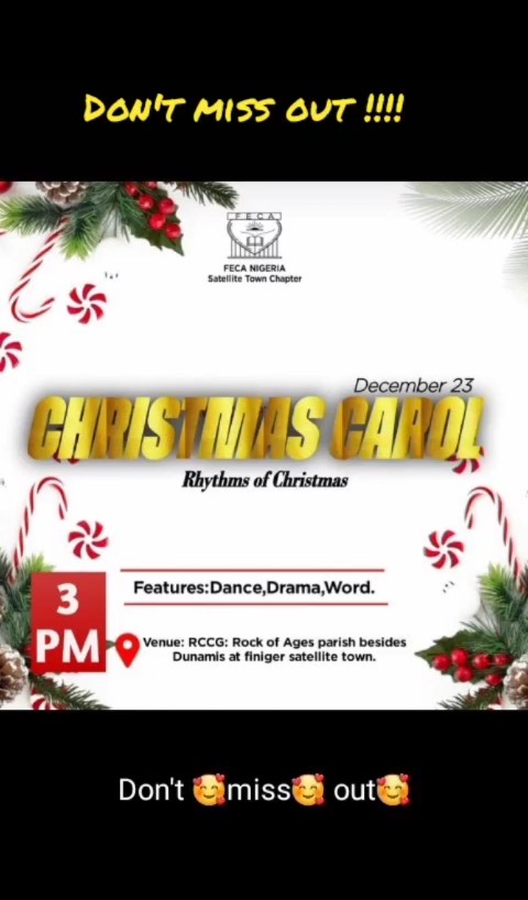 Feca Nigeria, Satellite Chapter located in Lagos Zone prepares to host her Christmas carols service which would take place on Friday, 23rd of December, 2022.